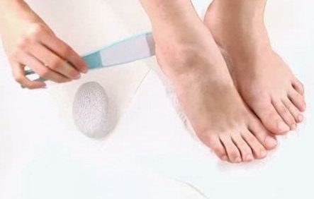 Remove the scrub with water and dry our feet with a towel. With a pumice or a lime, file carefully the calluses, if you have them.