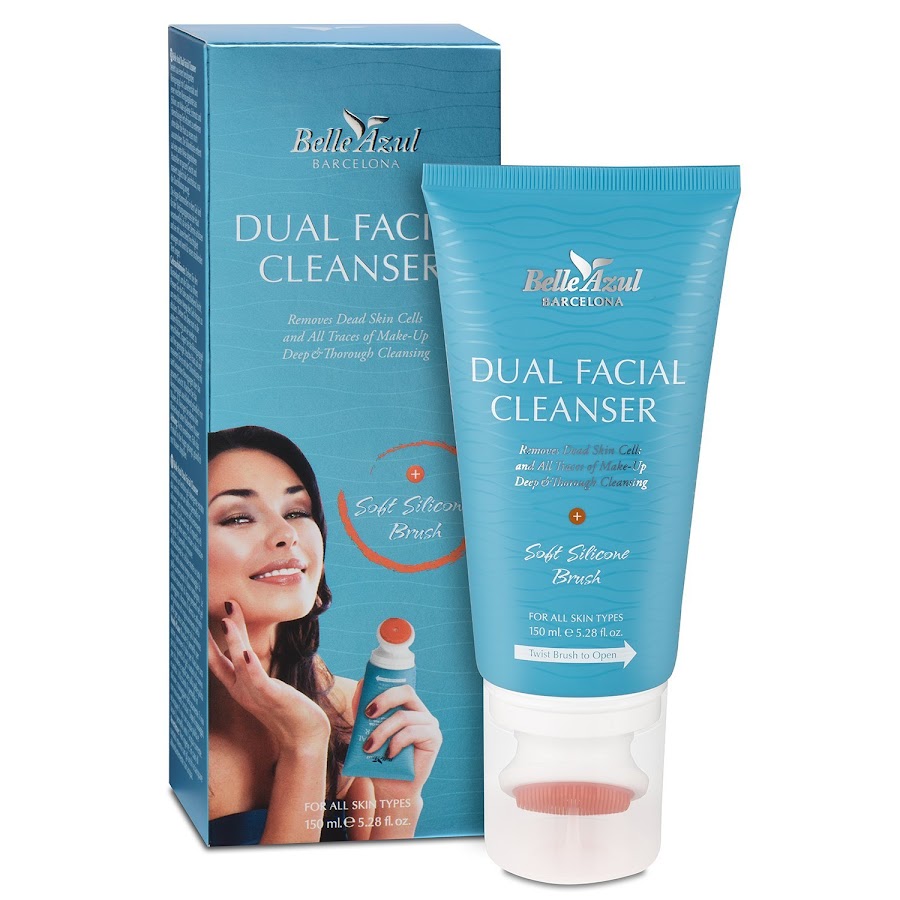 En Belle Azul adquirí a través de Amazón dos productos:Belle Azul Dual Facial Cleanser - Un limpiador a base de pepino que elimina suavemente los restos de maquillaje, las células muertas de la piel, el exceso de grasa y otras impurezas. A la vez que masajea suavemente la cara con el cepillo de silicona que incorpora el tubo. Contiene aceite de argán y las células madre de argán, ricas en Vitamina E.