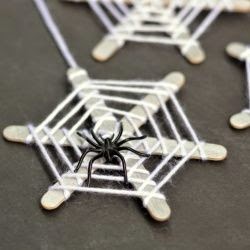 Necesitaríamos: Palitos de polo, hilo de lana blanco y una araña de plástico (De venta en cualquier bazar). Se puede pegar palitos uno tras otro para alargarlos y hacerla más grande.