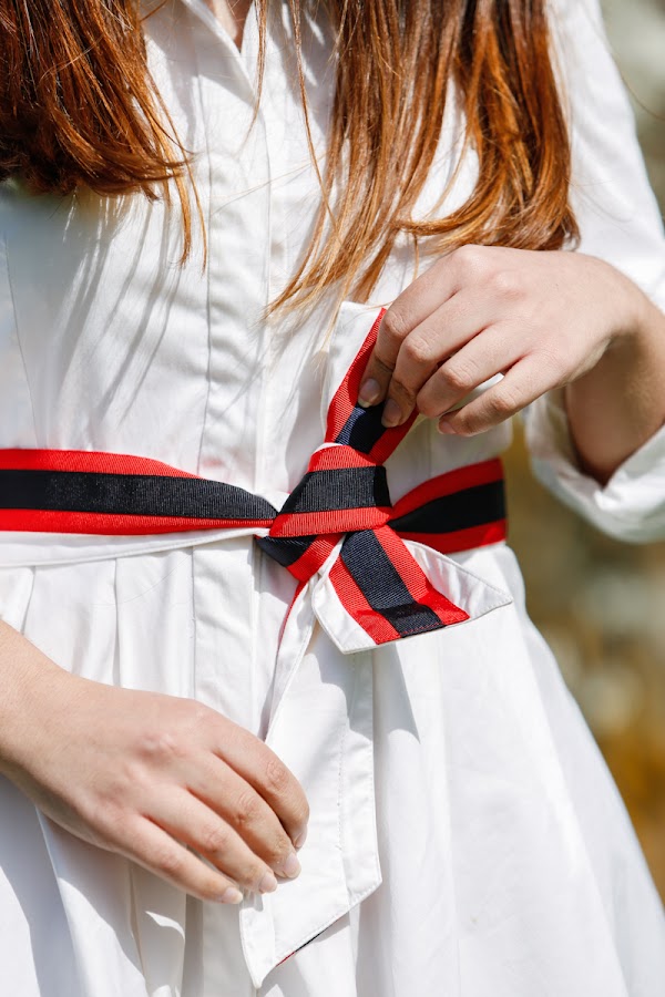 Porque este vestido es EL vestido. Si tuviera que definirme con una prenda sería esta, por varias razones. La primera de ellas, que es de El ganso, una marca preppy española (la única, maybe) y mi absoluta favorita. Además, tiene un estilo camisero clásico y combina mis dos colores estrella, el rojo y el azul marino. En otras palabras, es preppy made in Spain, o sea, lo que soy yo.