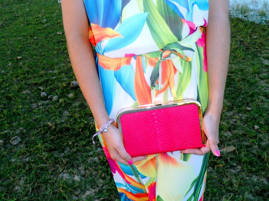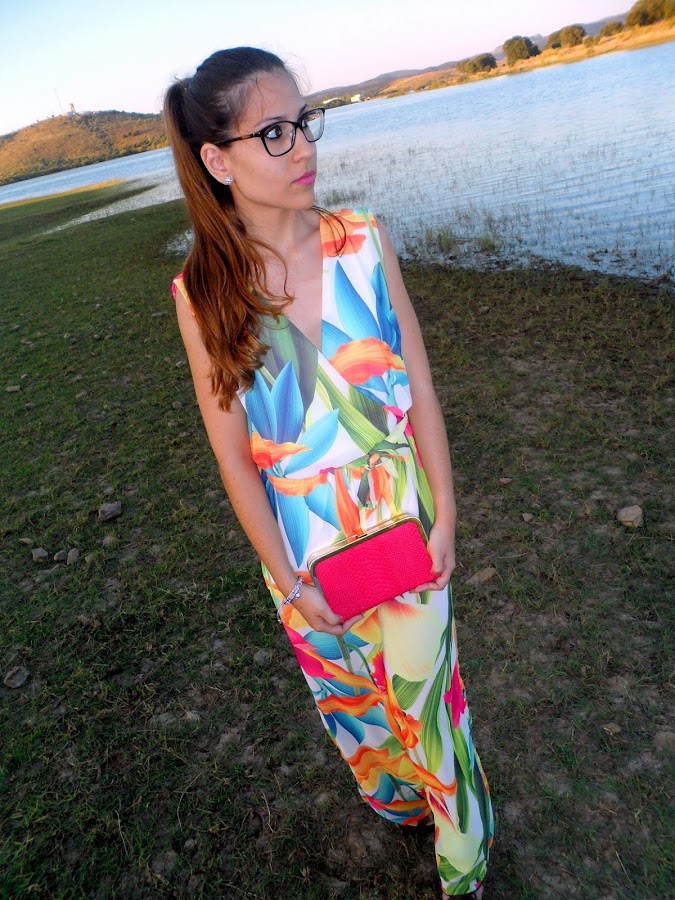 El bolsito con el que lo he combinado es precioso y con un color rosa que le viene ideal al mono. Además trae una cadenita dorada para las que prefieren colgárselo. Espero que os guste tanto como a mi!!