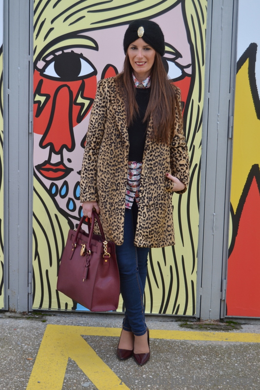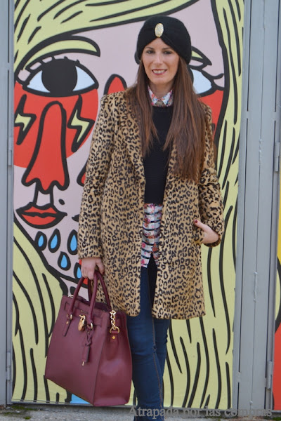 En cuanto a mi look y para las que me habéis preguntado: jeans de PULL&BEAR, jersey corto de ZARA y camisa de flores de STRADIVARIUS, estas tres cosas de nueva temporada. Los zapatos de Zendra de El Corte Inglés que ya me habéis visto al igual que el bolso, el Hamilton de MICHAEL KORS. El abrigo animal print lo había comprado pocos días antes de irme a Madrid en el outlet de MANGO, todo un chollo. Y el gorro turbante lo compré en una tienda de Avilés que no recuerdo el nombre y le añadí un broche perteneciente a la magnífica colección de broches que tiene mi madre, éste en concreto es de principios de los 80.