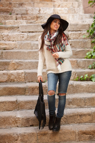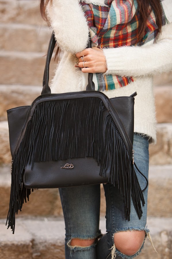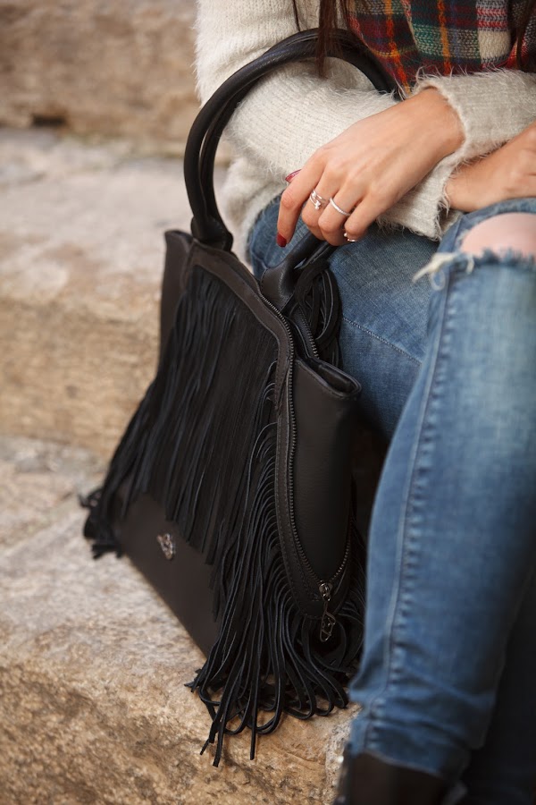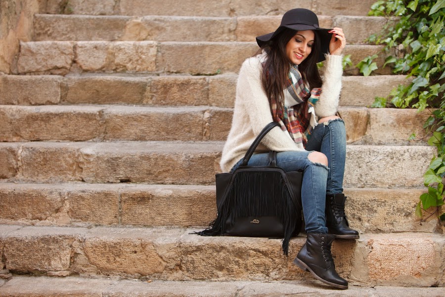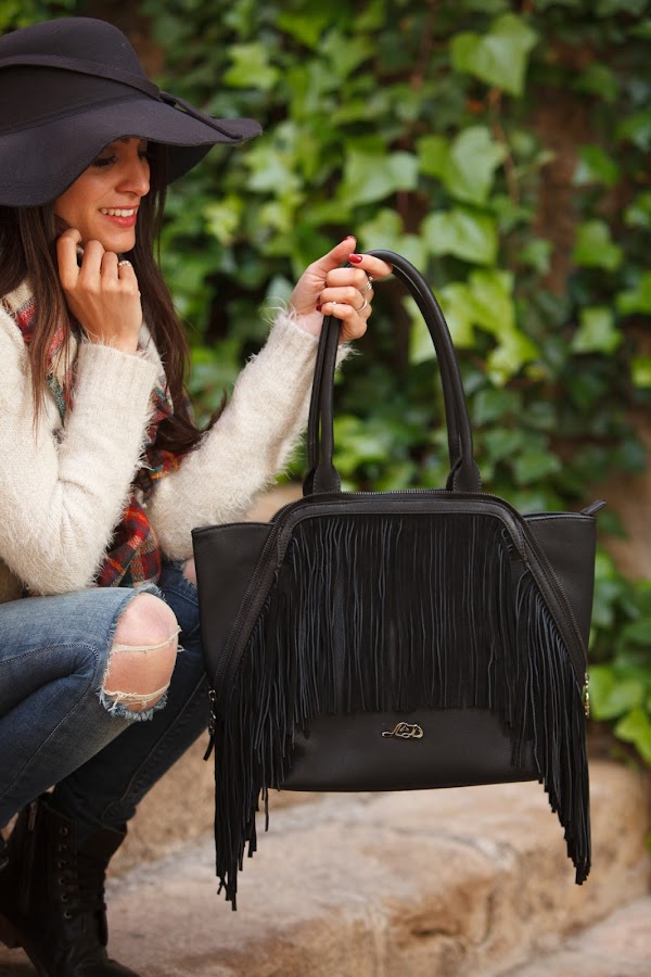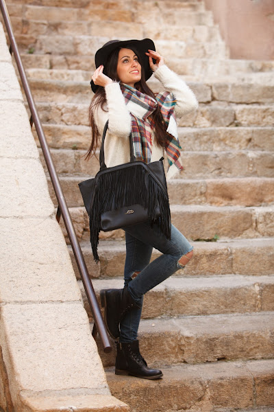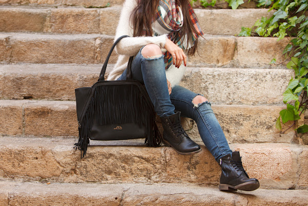 Hoy además os presento dos de mis últimas adquisiciones... Un precioso bolso de flecos LOEDS y unas botas de piel estilo militar de MARILA. Ambos me han conquistado. Os dejo con el look!