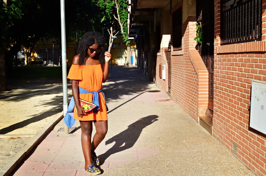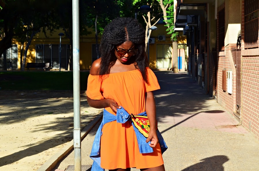 Tenía muchas ganas de un vestido con hombros al aire, pero que fuese básico, y este vestido me pareció perfecto porque además no tengo ningún vestido naranja.