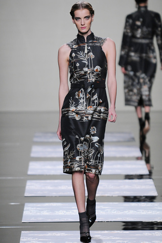 Como si de una cena entre amigos se tratara donde todo comienza bien y termina de lujo, así definiría yo el trabajo de los Ailanto con esta colección llamada Chinoise. De nuevo definiría ciertamente la colección como contenida pero salpicada de elementos preciados que no debemos saltarnos: unas blusas exquisitas, estampados de inspiración oriental 100% Ailanto + sus abrigos ¡guau! Entre inspiración kimono ó de recta esencia masculina – gris/negro – indispensables para el próximo invierno, y ese terracota que parece un imprescindible en sus colecciones y en esta ocasión utilizó para un fluido vestido espectacular de reminiscencias entre años 20 y bizantinas??