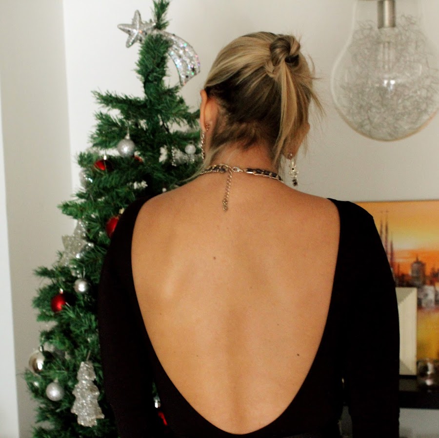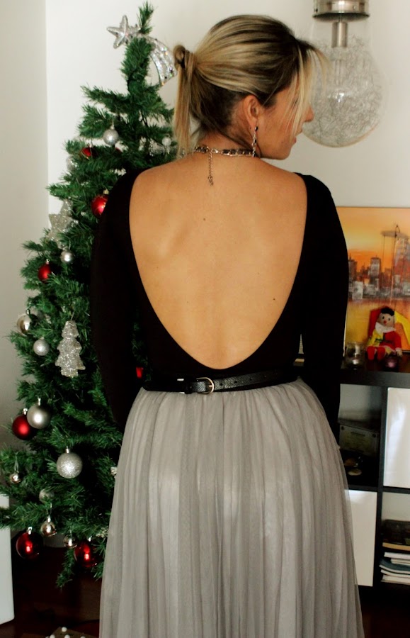 A while ago I wanted a tulle skirt, but I didnt dare to buy it and when I saw this one in grey color, I thought that it was perfect for this Christmas. I wear it with a black bodysuit with open back and black sandals. At end, I added a belt to mark the waist, a necklace and a black clutch. A smart outfit that will make you feel like a princess.