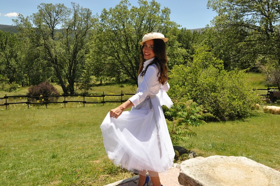 Canotier: Lucía Be// Camisa: Uterqüe-Pontejos// Falda: VioletaandCo// Zapatos: Manolo Blahnik