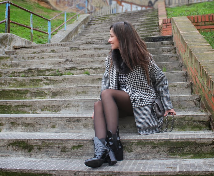 El look no tiene nada de especial, me fije en este vestido de Persunmall por el estampado pata de gallo, mi idea era combinarlo con amarillo mostaza, pero lo de siempre no he podido ir de tiendas en estos dos meses, por ello recurrí al contraste de estampados y me volví a poner este abrigo que tanto me gusta por su comodidad y lo calentito que es.