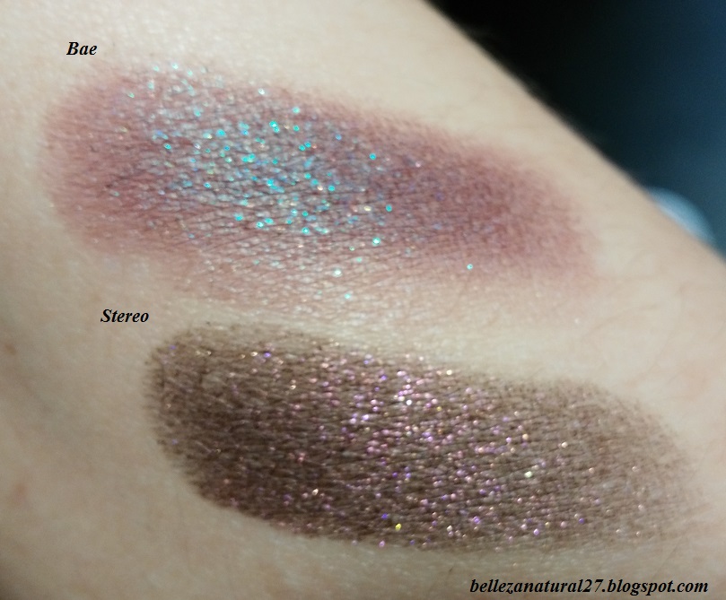 Como podéis comprobar, Stereo tiene un tono entre rosado y cobrizo súper original y difícil de describir, y Bae tiene un tono morado precioso con destellos entre azul y verde. Lo que os he dicho, ¡impresionantes!.