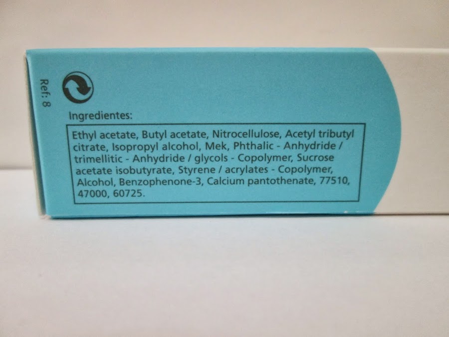 Huele un poquito fuerte, pero enseguida se va el olor... La mayoría de veces que lo he probado ha sido solo, aunque alguna vez lo he utilizado debajo de algun esmalte de uñas con color, y la verdad, es que noto que tarda más en descascarillarse... Incluso, también, lo aplicaba encima del esmalte con color, para que aportara un toque de brillito y fuera más duradero el color del esmalte de uñas.