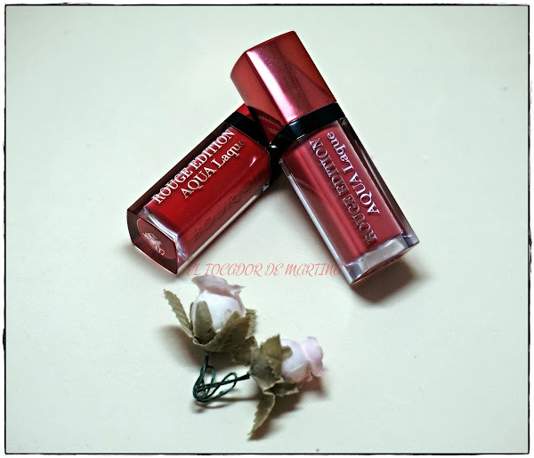 La gama de labiales líquidos de Bourjois se divide en dos tipos: los Velvet que son mates, y éstos, que son los Aqua Laque y su acabado obviamente es brillante.