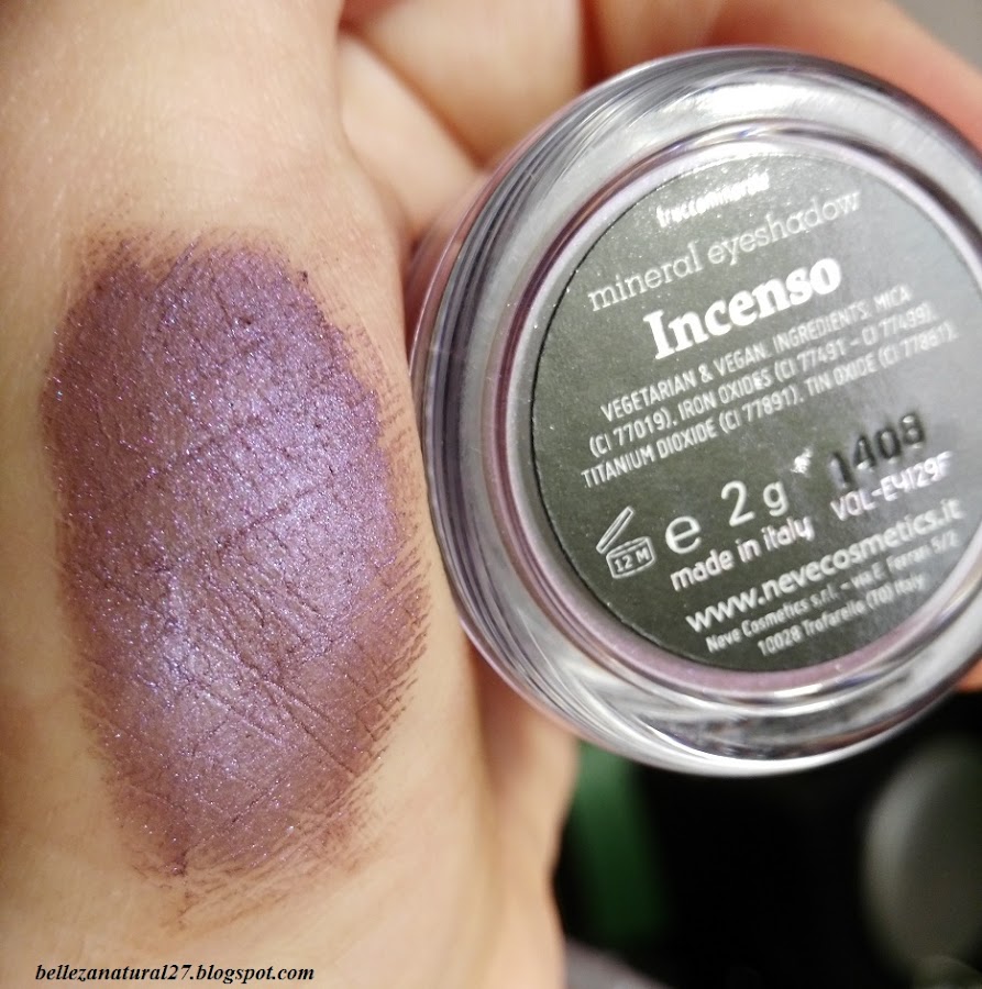 ¿Qué os parece? Así queda sobre una prebase de sombras. Sólo queda más ligero y yo no lo recomiendo porque si lo aplicamos sólo, cae mucho polvillo (esos preciosos destellitos) sobre el rostro. Con la prebase queda mejor sellado, se puede difuminar y trabajar mejor y no mancha. Como podéis ver en la imagen, cada envase lleva 2 gramos de producto, y si queréis ver los ingredientes, también los tenéis en la foto. Si las sombras en godet de esta marca son preciosas, los pigmentos son increíbles. Si aún no habéis probado nada de Neve Cosmetics os recomiendo que lo hagáis porque estoy segura de que os encantará y repetiréis como yo.