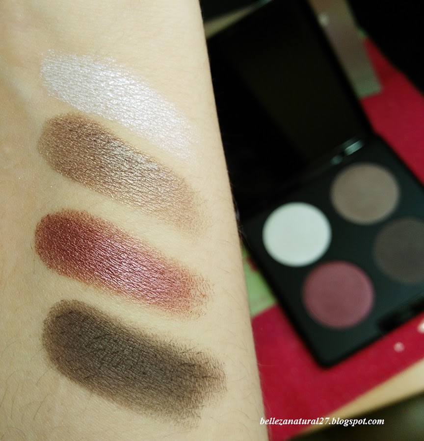 Debo decir que estos tonos me tienen absolutamente enamorada porque puedes hacer un look muy sutil o más arriesgado según los combines. Al final os dejaré un maquillaje que me hice hace unos días con esta paleta para que las veáis en acción, pero ahora os dejo los swatches para que podáis apreciar la excelente pigmentación que tienen. De arriba a abajo: Newton, Peluche, Ufo y Expresso.