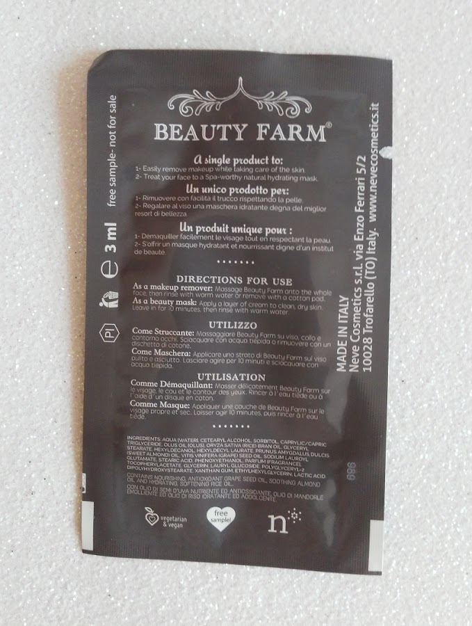Este producto es 2 en 1 ya que por un lado es una loción limpiadora y por otro una mascarilla hidratante. Tiene una textura cremosa que cuida nuestra piel gracias a los aceites vegetales que nos ayudan a nutrirla de forma suave. Su perfume es muy delicado y floral.
