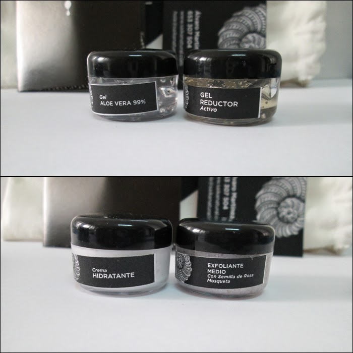 El gel de aloe y el gel reductor tienen un olorcito muy agradable y una textura gel muy fresquita. Pero las dos que más me han gustado han sido la crema hidratante y el exfoliante corporal medio. Sus texturas son en crema muy ligerita y huelen muy bien, aunque muy suave. La crema hidrata muy bien y el exfoliante, parece suave, pero la verdad es que tiene muchas partículas que eliminan muy bien las impurezas de la piel.