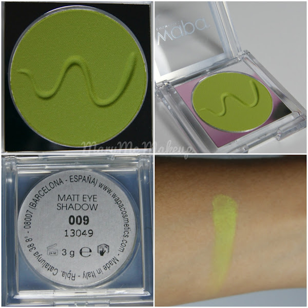 Sombra 9: verde lima. Es la que menos pigmenta de todas, hay que insistir un poco más, y es un pelín tizosa.