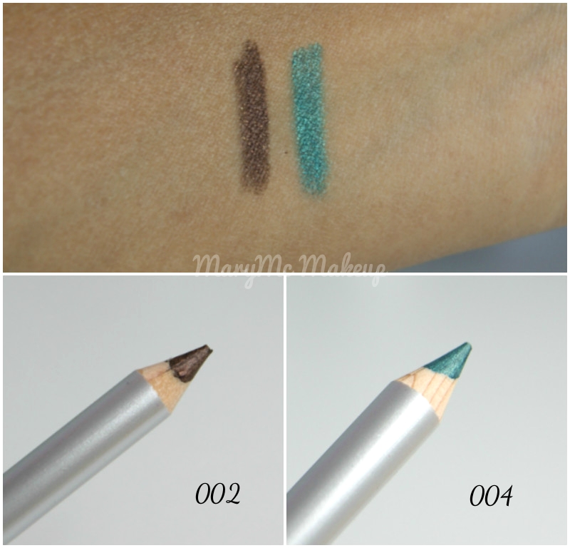 A mi me mandaron los tonos 02, un marrón cobrizo con destellos, y el 04, un verde aguamarina metalizado precioso. Ambos se deslizan bien sobre la piel, pero en la waterline no pigmentan nada.