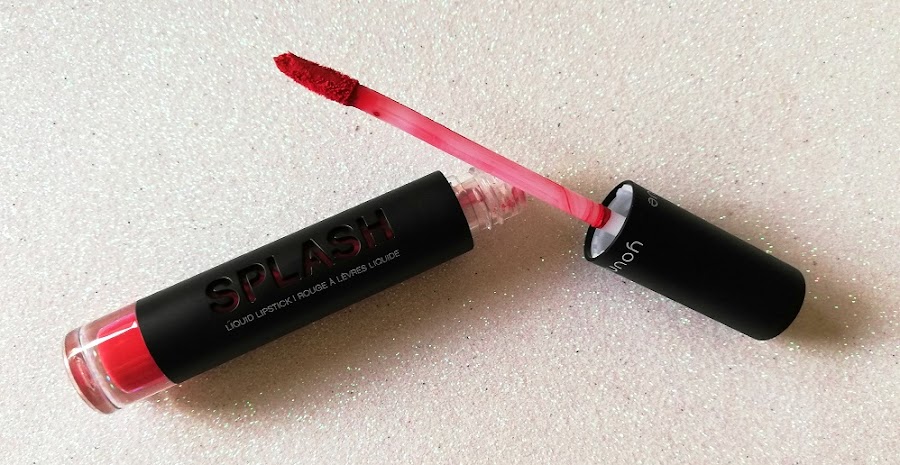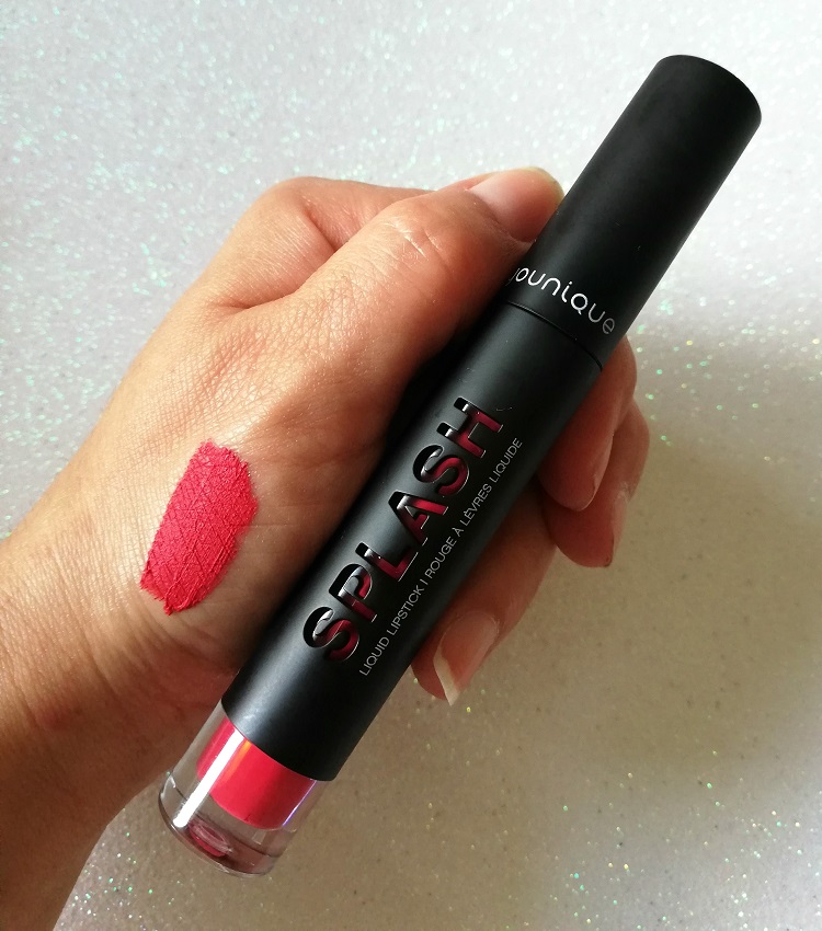 2-Labial líquido Moodstruck SPLASH en tono Stubborn: Este labial viene dentro de una cajita de color negro con letras en blanco y rojo. Contiene 3,55 ml. Tiene un packaging súper bonito en color negro con un extremo transparente donde podemos ver el color del labial, y un grabado donde se pueden ver las letras SPLASH en el tono del labial también.