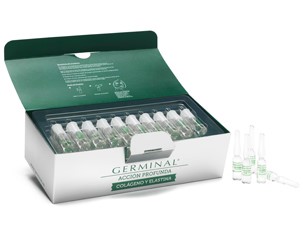 Ampollas Germinal Colágeno y Elastina: La propia marca las define asi: “ Colágeno: Refuerza las fibras elásticas de la piel, aporta nutrición y firmeza. Elastina: Disminuye la profundidad de las arrugas y líneas de expresión. Además contienen extracto de Alga de las Nieves que estimula la producción de colágeno por la propia piel “