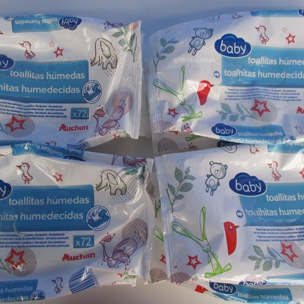 En la bolsa tengo ocho paquetes de estas toallitas, las compro en packs de cuatro, me gustan, me van bien y son siempre las que compro.