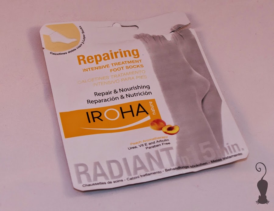 Lo primero que os enseño es estos calcetines de la marca Iroha Nature, que compré en una feria de peluquería para probar y que me gustaron mucho. Los utilicé en verano, ya que se nos suelen secar más los talones y el pie en general. Son unos calcetines con un tratamiento intensivo de reparación e hidratación, olían a melocotón que daban ganas de comerlo !! Al meter los pies en ellos, se notaba bastante frío y humedad, al rato ya genial, se dejan puestos 15 minutos y se retiran. A mi me gustó mucho ya que me dejaron los pies hidratados y muy relajados. La cosa que tengo que ver ahora donde puedo encontrarlos. Y de precio creo recordar que no eran muy caros, 2??? y algo, 3??? como mucho.