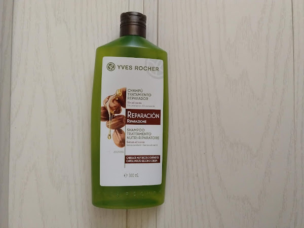 También he estado probando el champú de tratamiento reparador sin siliconas de la marca Yves Rocher, sin parabenos y sin colorantes. Muy recomendado para cabellos muy secos y dañados, he notado mucha hidratación y mucho menos seco, ya que ahora se me engrasa un poco. Contiene más de un 96% de productos naturales.