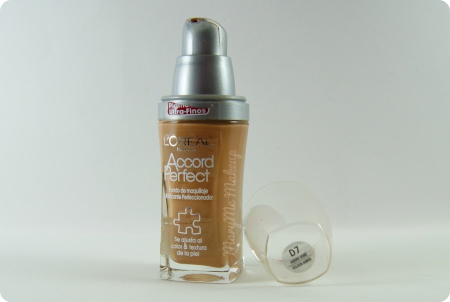 Base de maquillaje Accord Perfect de Loreal: la he usado mucho tiempo, se me adapta el tono perfectamente, pero ahora que me ha dado por las bases mates no soporto las partículas brillantes que tiene ésta base. Odio cuando me da el sol en la cara, parezco una bombillita, y no desaparecen ni matificándola así que no repito, quiero probar bases que sean mates y un poco más cubrientes.