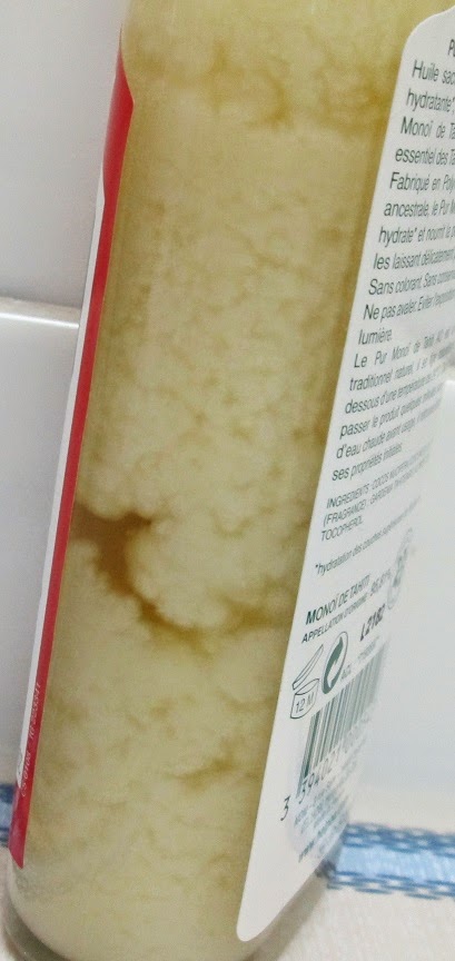 Siento no haberos dejado foto de su textura líquida (aquí tenéis una de mi "instagram")..., pero os comento, que en su interior, encontré sustancias de flor seca de Tiaré, jejeje.