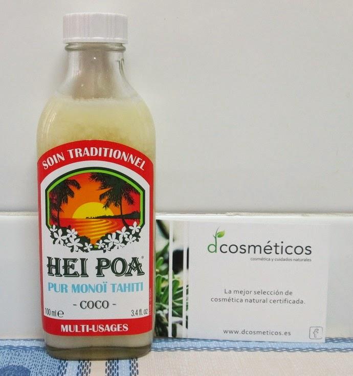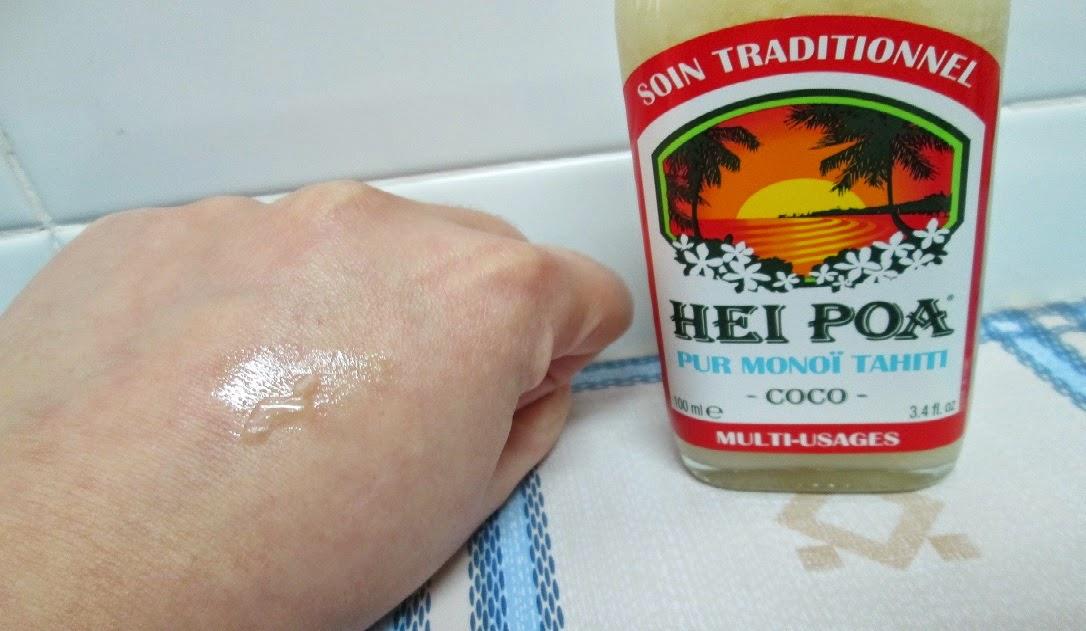 El siguiente producto que os enseño, se trata de este aceite de Monoi de la marca "Hei Poa". Es la primera vez que pruebo algo de esta marca, es más, ni la conocía, jejeje.