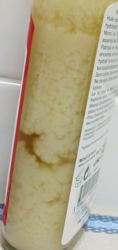 Cuándo lo recibí, estaba totalmente líquido y era de color amarillento, pero ahora que ha empezado a refrescar, tiene esta textura densita blanquecina... No os asustéis, es normal, jejeje.