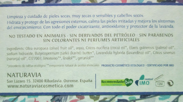 Pero como os podéis imaginar, a mí, lo que más me ha enamorado de este producto, ha sido su fragancia... No es que huela bastante a lavanda, pero es un aroma floral muy sutil y suave, y que gracias a la manteca de karité y al aceite de coco, consigue obtener un olor, más bien, fresco y limpio.