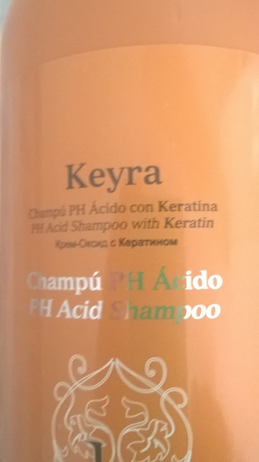 En segundo lugar, os hablo del champú que estoy usando. Es de la marca Keyra. Es un champú de ph ácido con keratina.