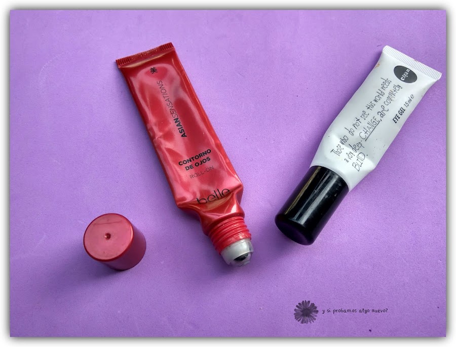 Con respecto a contorno de ojos he terminado dos, uno es el Asian sensations de Belle, este lo compré en Eroski por 7 y trae una bolita metálica que aporta frescor a esta zona tan delicada. Me gusta bastante y por el precio que tiene no está nada mal.
