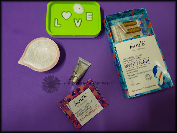 En el jabonero que pone Love está lo que queda de la pastilla que compré en Refan de leche de almendras. Me ha encantado, ahora he comprado otra de Rosa mosqueta, pero ésta seguro que la vuelvo a comprar. Me deja la piel hidratada, la he usado para desmaquillarme también y está muy bien, no deja la piel tirante para nada y eso que soy de piel seca y ahora en invierno más. He terminado una mascarilla que compré en Douglass, me ha dado para varios usos pero no he notado nada especial con ella, así que no repito, creo que costaba unos 3€. De Bonte he usado esta mascarilla que me encanta, repito siempre con ella, cuesta 1€ y da para dos veces. Las ampollas de Bonte no me han parecido nada del otro mundo, no creo que repita con ellas, he notado algo de hidratación en el momento pero nada más. También he terminado la muestra de Elisabeth Arden, no sé muy bien si es un sérum o un presérum, en todo caso no pienso añadir un paso más antes del sérum y menos al precio que estará éste. No me gusta cómo huele, me recuerda a otro que probé de la misma marca que era con bolitas y no me gustó nada, quizás por eso ya no lo veo con buenos ojos. En sí no está mal como sérum, se absorbe rápido y deja la piel bien, pero por el precio que tiene me esperaba algo más. No creo que compre el tamaño venta.
