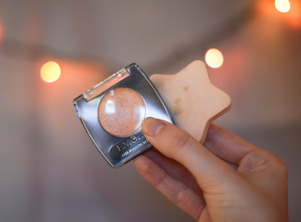 Por acá tenemos una esponjita en forma de estrella que ya no daba para más, y una sombra coral de la marca Emolan. La compré cuando empezaba a maquillarme, pero nunca la usé demasiado y tampoco me duraba mucho en el párpado.