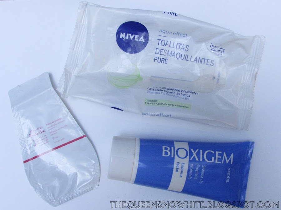 También terminé con una muestra gratis de la crema de Natura Todo Día de pimienta rosa (¡reseña pendiente!) que la amé y gracias a ella me compré la versión grande; las toallitas desmaquillantes de Nivea que son bastante buenas, pero no sacan tooodo el maquillaje. Las recomiendo si se van de viaje o algo por el estilo, no para usarlas a diario.