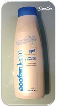 Empezaré por el gel de baño acofarderm de la farmacia. Es un gel con aloe vera y vitamina E. Con ambas cosas esperaba más de este gel. No digo que esté mal pero esperaba más. Cierto que no reseca la piel, pero al llevar aloe y vitamina E esperaba más suavidad e hidratación después de usarlo que la que consigo con otros geles pero no ha sido así. Por mi parte no creo que lo compre hay otros que funcionan igual y son más económicos.