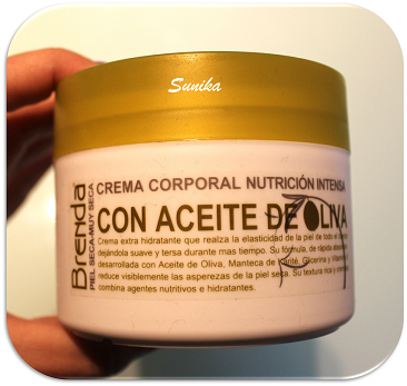 Crema corporal de nutrición intensa con aceite de oliva Brenda. Esta no me ha gustado nada de nada, de ella ni me ha gustado la textura, ni la hidratación que creo que se queda muy corta y además tarda mucho en absorberse. Total que con esta seguro que no repito una total decepción.