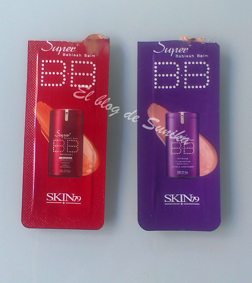 Os voy a ir contando uno a uno mi experiencia con ellos y lo que me han parecido. En primer lugar os enseño las muestras de BB cream que he gastado de Skin79. La primera del sobre rojizo cubre tres problemas principales de la piel, es antiarrugas, antimanchas y lleva protección SPF50++ PA+++ con un acabado bronceado. Me ha gustado mucho, tiene una textura más densa que las habituales BB creams que he probado y cubre muy bien las imperfecciones por lo que deja la piel con un tono muy homogéneo y un aspecto muy bonito. Tiene una terminación mate que me encanta y además me ha aguantado muchísimo sin salir brillos, lo único a sido el tono que era algo oscuro para mi tono de piel ahora en invierno. La morada me ha gustado mucho también, como la anterior es más densa y cubre muy bien las imperfecciones y también me ha durado muchísimo sin brillos. Esta es una BB multifuncional cuyo objetivo es prevenir los daños que los rayos UV provocan en nuestra piel reduciendo las arrugas e hidratando en profundidad. En este caso el tono si que me iba a la perfección. Me quedan aún otras muestras que probar del pack que me enviaron desde Skin79, pero después de probar estas estoy segura de que no me van a decepcionar, tendré después que decidir cual es la más adecuada para mi.