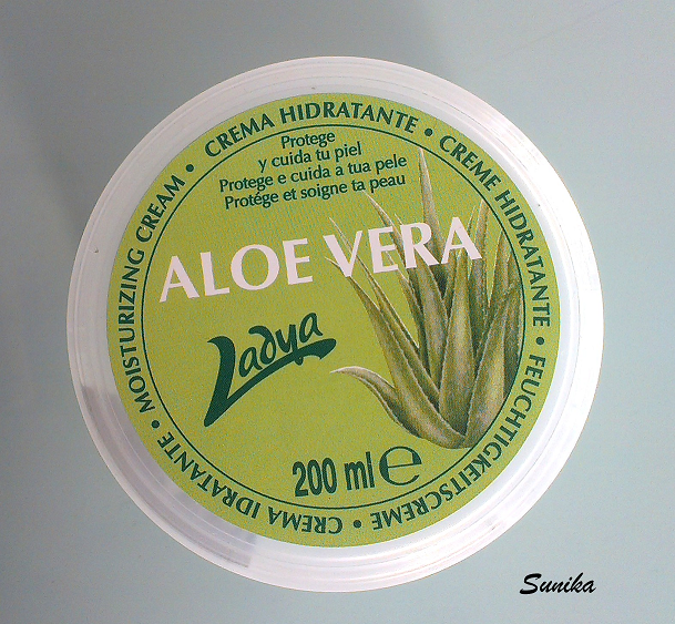 Crema hidratante corporal Aloe Vera de Ladya. Más que una crema parece un gel, se absorbe muy bien pero no me ha parecido muy hidratante, creo que se queda bastante corta si hablamos de hidratación así que no creo que vuelva a usarla.