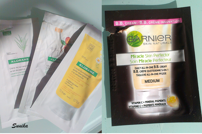 BB Cream de Garnier. La muestra no da para mucho pero si constaté que el tono medio que me suele ir muy bien en casi todas las BB cream en esta me queda oscuro. Es una BB que te deja un tono de piel bastante homogéneo y controlaba bastante bien los brillos, mi piel grasa aguantó muy bien varias horas con ella. No se si la compraré ya que tendría que ver si el tono claro encaja con mi piel pero como BB cream me ha gustado.