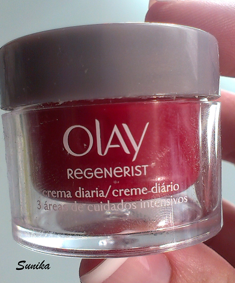Olay Regenerist crema diaria. Es una muestra que si no recuerdo mal venía en una revista. Me ha gustado bastante pero lógicamente con esta muestra no he podido constatar si realmente esta crema cumple con lo que promete. De todas formas si que tengo curiosidad y probablemente la pruebe.