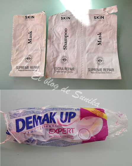 Y ya para terminar unas muestras de Champú y Mascarilla de Skin Method. Me han gustado bastante ya que dejaban el pelo suave y brillante pero con solo estas muestras no es mucho lo que se puede probar, pero es posible que me anime a probarlos.