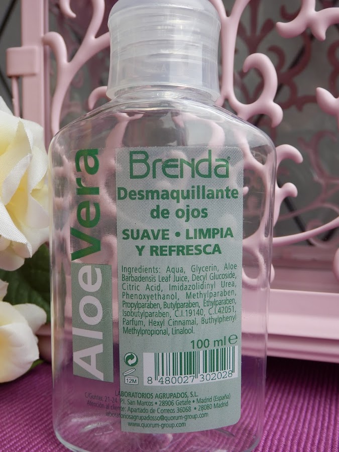Empezamos por este desmaquillante de ojos de Aloe Vera de la marca Brenda, me lo regalo Noelia del canal de Youtube Noe19rammstein y se supone que es un desmaquillante suave que limpia y ademas refresca y contiene 100 ml.