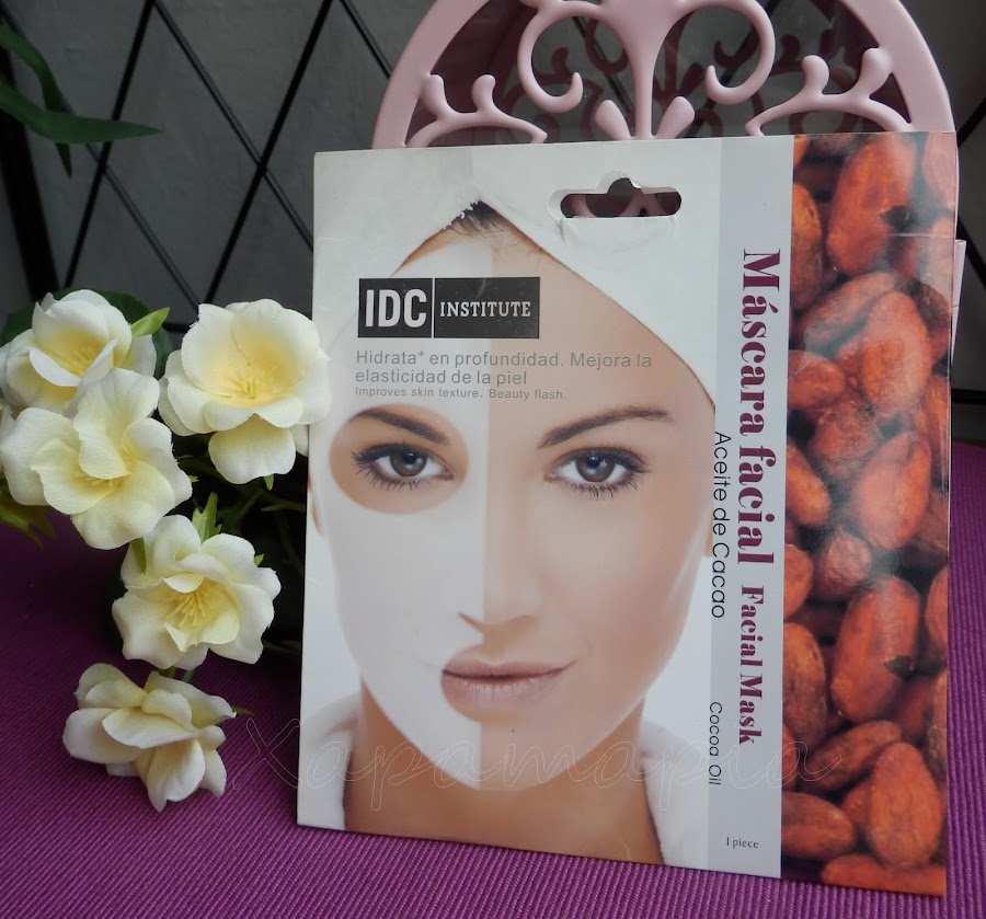 Algo con lo que si repetiré seguro, seguro es esta mascarilla de papel de la marca IDC institute de Aceite de Cacao. Es una mascarilla de algodón de estas que viene una mascara impregnada de producto y solo tienes que ponértela sobre el rostro, dejar que actúe y tras unos minutos te quitas la mascara, dejas que el producto que te quedo en el rostro se absorba aplicando un pequeño majase y listo!