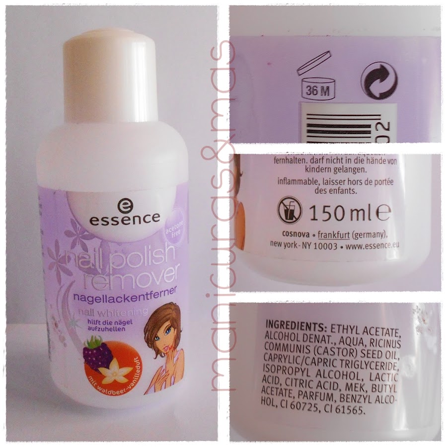 Opinión: al igual que otro quitaesmalte de esta gama que os enseñaba en este post (aquí), con este producto estoy en un dilema. Y es que retira bien el esmalte, pero no me gusta nada su olor. En teoría debería oler a uva y vainilla, pero yo no huelo a nada de eso. Se me ha hecho muy pesado de usar y he tardado muchísimo en gastarlo, así que después de haber utilizado estos dos quitaesmaltes, creo que no volveré a comprar ninguno con olores... creo que estoy tan acostumbrada al olor tradicional del quitaesmalte, que otro tipo de olor mezclado con olor de los químicos que lo componen hace que me resulte muy pesado. A su favor tengo que decir que, al no contener acetona, me deja las uñas más cuidadas que los que sí la llevan.