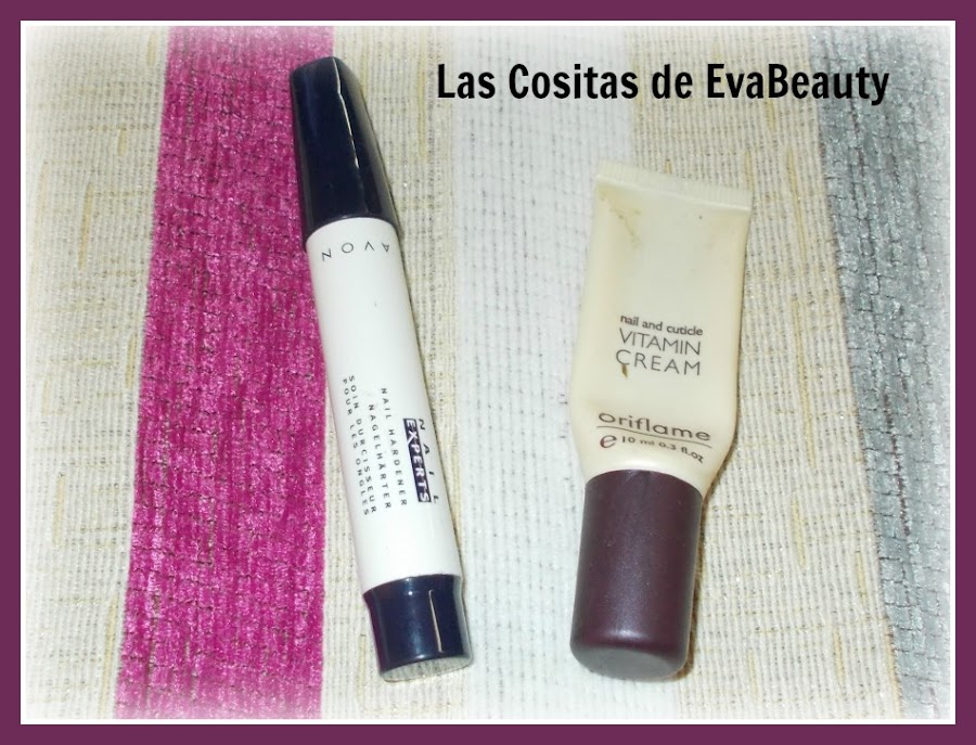 16-17- Lápiz endurecedor de uñas de Avon y crema con vitaminas para uñas y cutículas de Oriflame.