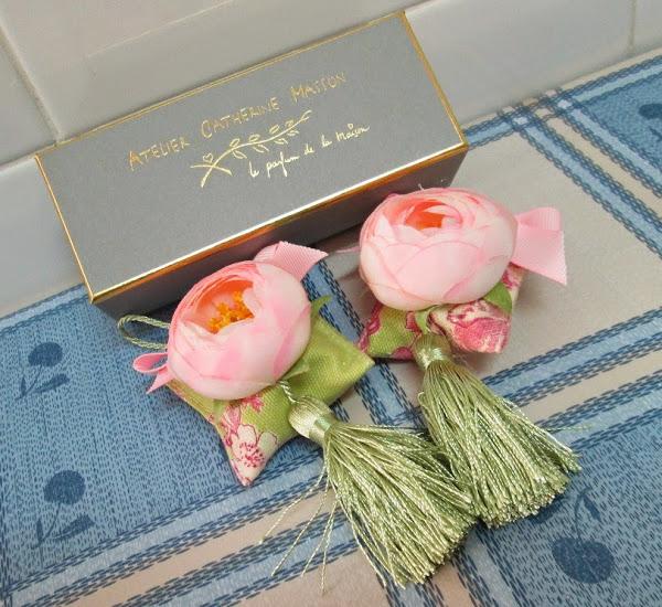 Lo primero que quiero enseñaros, son estos saquitos perfumados de la marca "Atelier Catherine Masson". Se presentan en una caja de cartón, muy bonita, donde al abrirla nos encontramos con estas dos preciosidades de saquitos en forma de flor rosa, que vienen perfumadas con hojas de té y decoradas con detalles muy bonitos.
