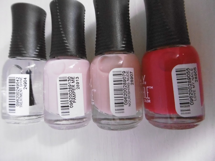 Kit mini manicura, cada esmalte contiene 5,3 ml. Contiene 3 esmaltes (rojo, rosado, y marrón clarito) y un brillo. El precio del pack sale a 21,50.