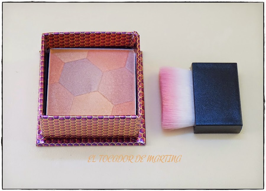 El "The Honey Queen" es un colorete a simple vista mucho más sutil que el anterior, sin embargo cuidadito con él, es un colorete tipo Coralista de Benefit, en el sentido de que no es tanto color como luz lo que deja, así la primera vez que lo usé me estaba maquillando con poca luz y creía que no pigmentaba nada, así que ahí me puse yo emocionada a darme brochazos de colorete como si no hubiera mañana. Menos mal que me miré en otro espejo antes de salir, porque me había puesto como una bombilla.